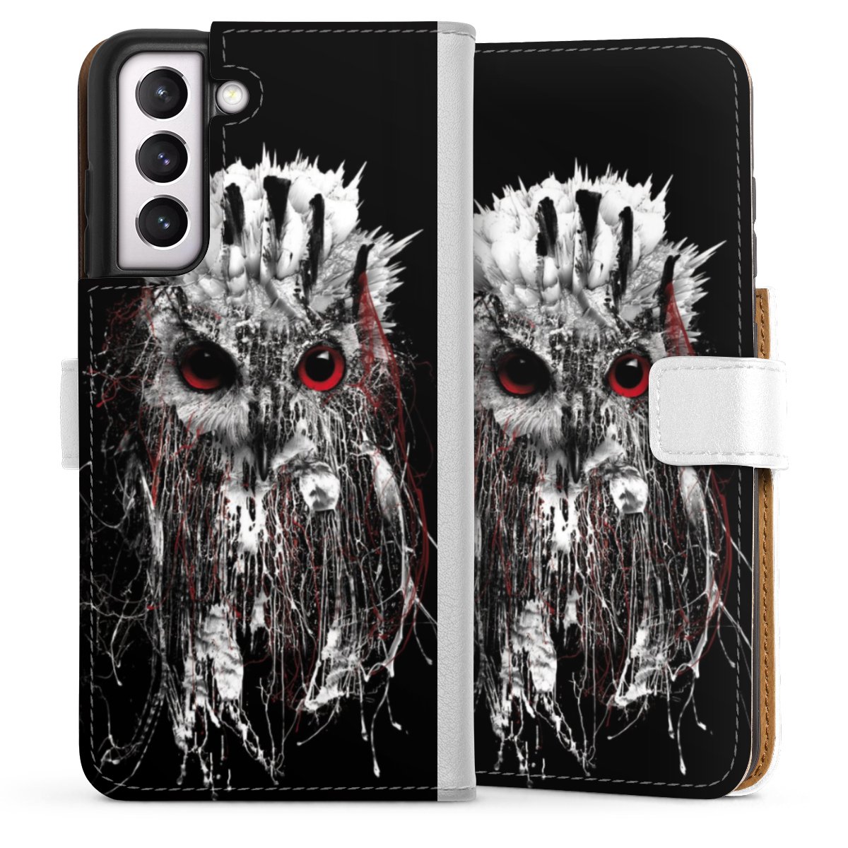 For our Sideflip Case we are using our advanced direct printing technology. The back and frontside are fully printabale, the inside of the phone bag is left unprinted. You can order the phone case without print, printed completely or also with a partial print.