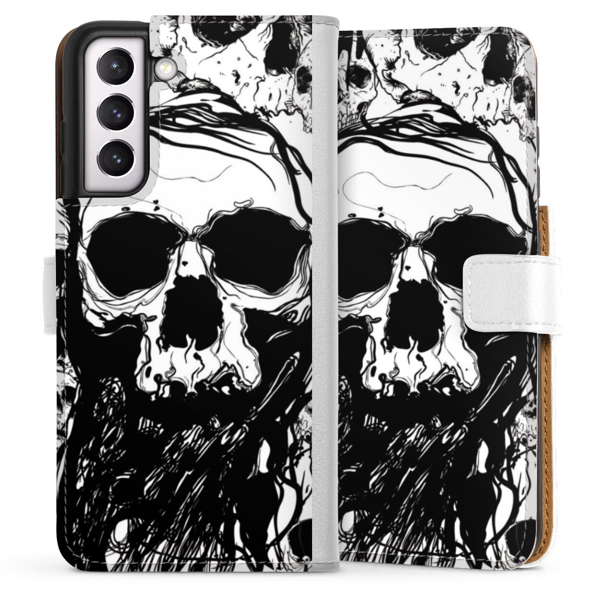 For our Sideflip Case we are using our advanced direct printing technology. The back and frontside are fully printabale, the inside of the phone bag is left unprinted. You can order the phone case without print, printed completely or also with a partial print.