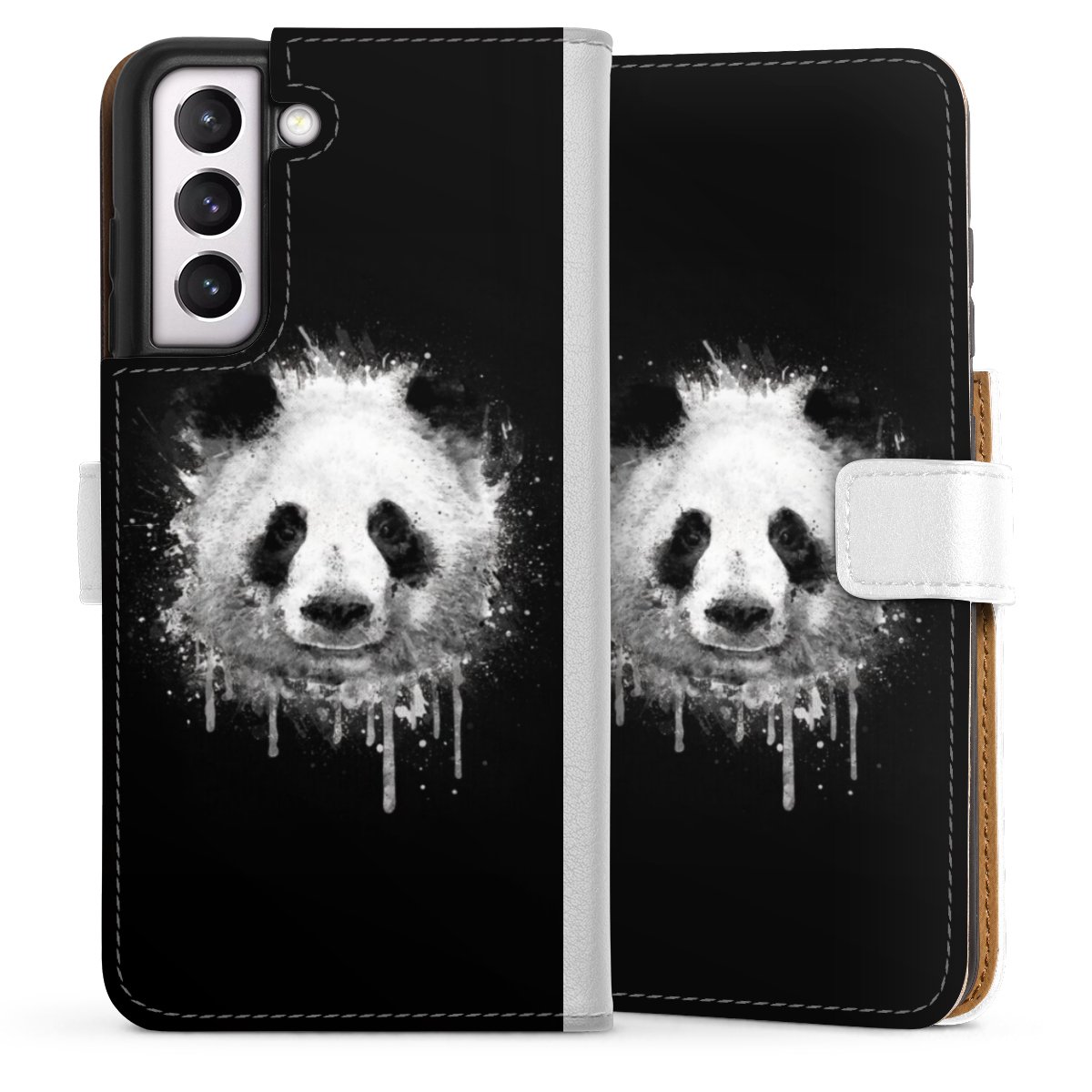 For our Sideflip Case we are using our advanced direct printing technology. The back and frontside are fully printabale, the inside of the phone bag is left unprinted. You can order the phone case without print, printed completely or also with a partial print.