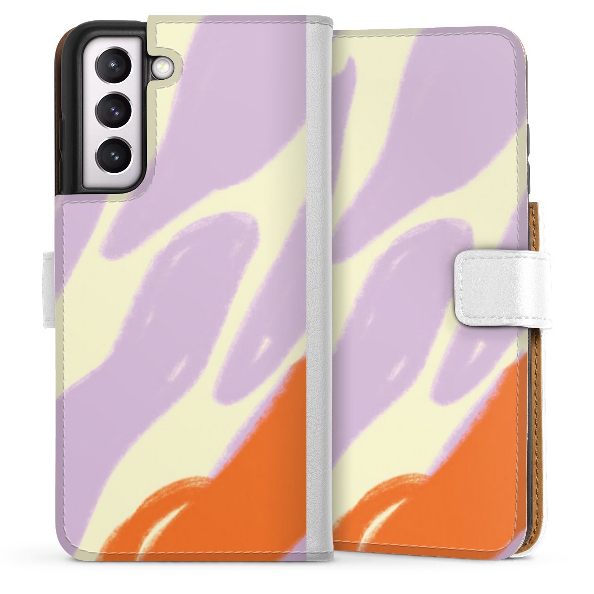For our Sideflip Case we are using our advanced direct printing technology. The back and frontside are fully printabale, the inside of the phone bag is left unprinted. You can order the phone case without print, printed completely or also with a partial print.
