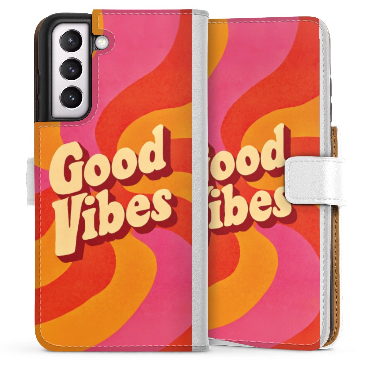 For our Sideflip Case we are using our advanced direct printing technology. The back and frontside are fully printabale, the inside of the phone bag is left unprinted. You can order the phone case without print, printed completely or also with a partial print.