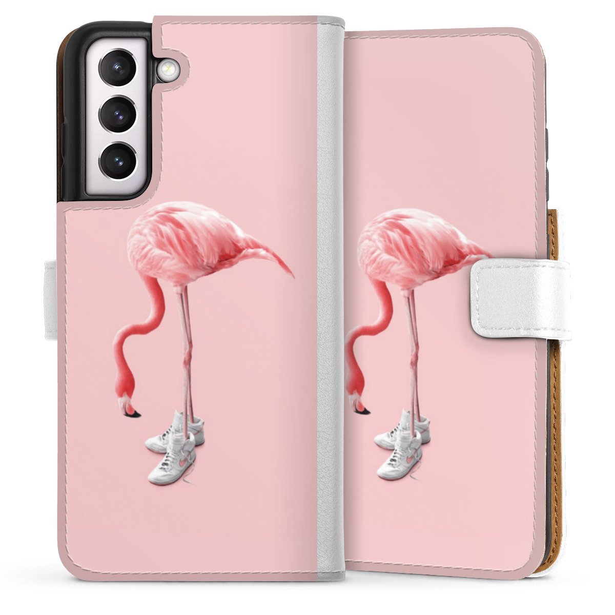 For our Sideflip Case we are using our advanced direct printing technology. The back and frontside are fully printabale, the inside of the phone bag is left unprinted. You can order the phone case without print, printed completely or also with a partial print.