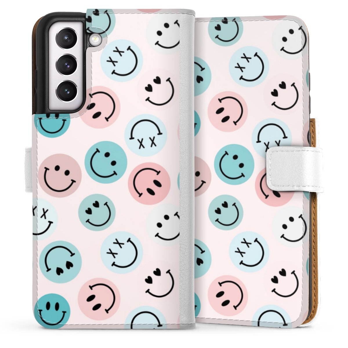 For our Sideflip Case we are using our advanced direct printing technology. The back and frontside are fully printabale, the inside of the phone bag is left unprinted. You can order the phone case without print, printed completely or also with a partial print.