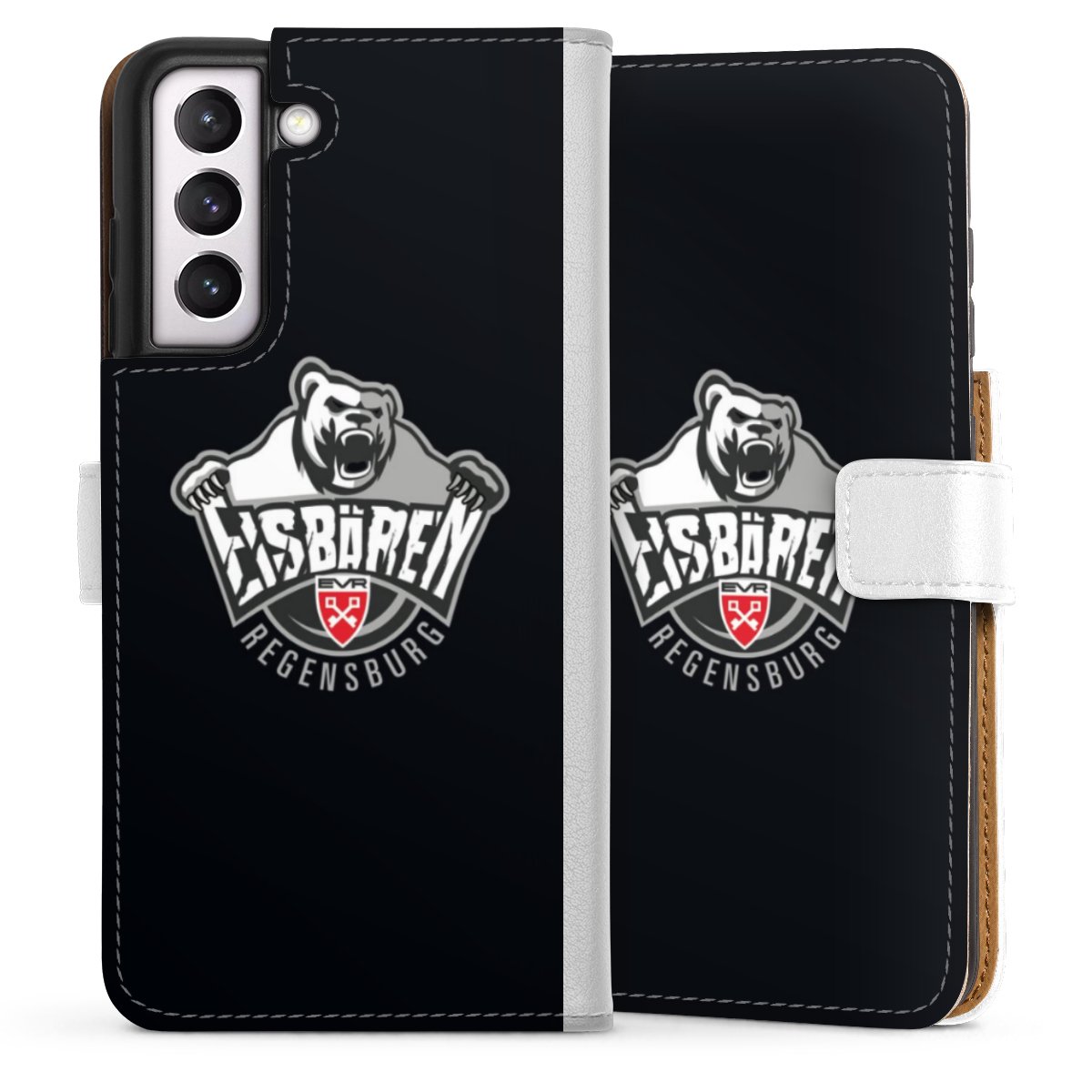 For our Sideflip Case we are using our advanced direct printing technology. The back and frontside are fully printabale, the inside of the phone bag is left unprinted. You can order the phone case without print, printed completely or also with a partial print.