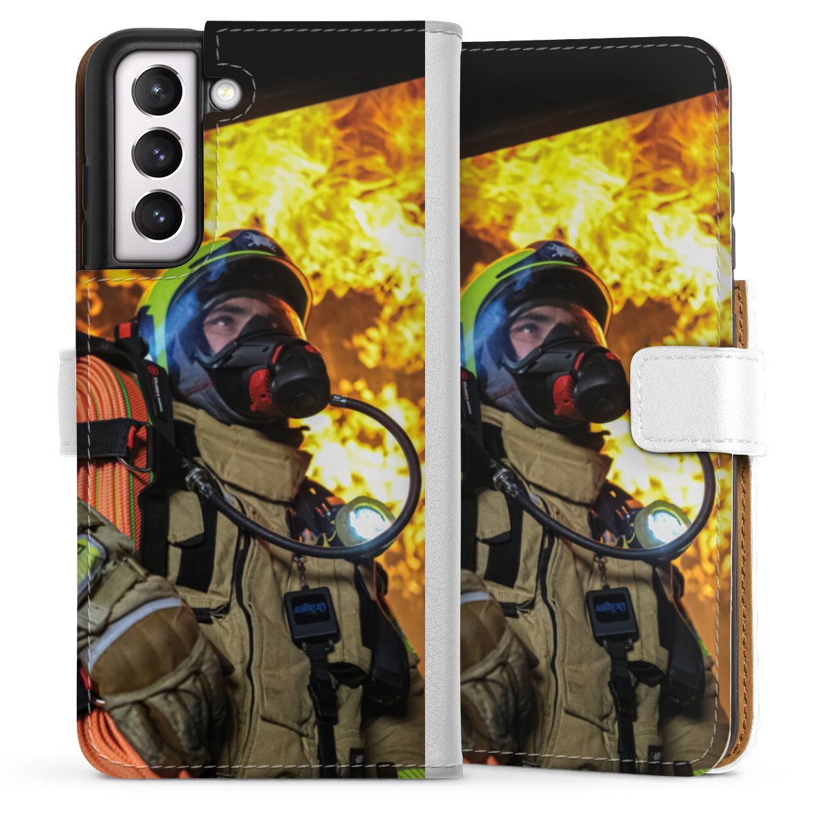 For our Sideflip Case we are using our advanced direct printing technology. The back and frontside are fully printabale, the inside of the phone bag is left unprinted. You can order the phone case without print, printed completely or also with a partial print.