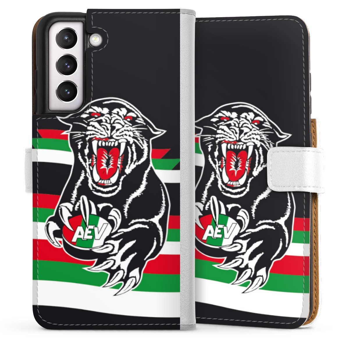 For our Sideflip Case we are using our advanced direct printing technology. The back and frontside are fully printabale, the inside of the phone bag is left unprinted. You can order the phone case without print, printed completely or also with a partial print.