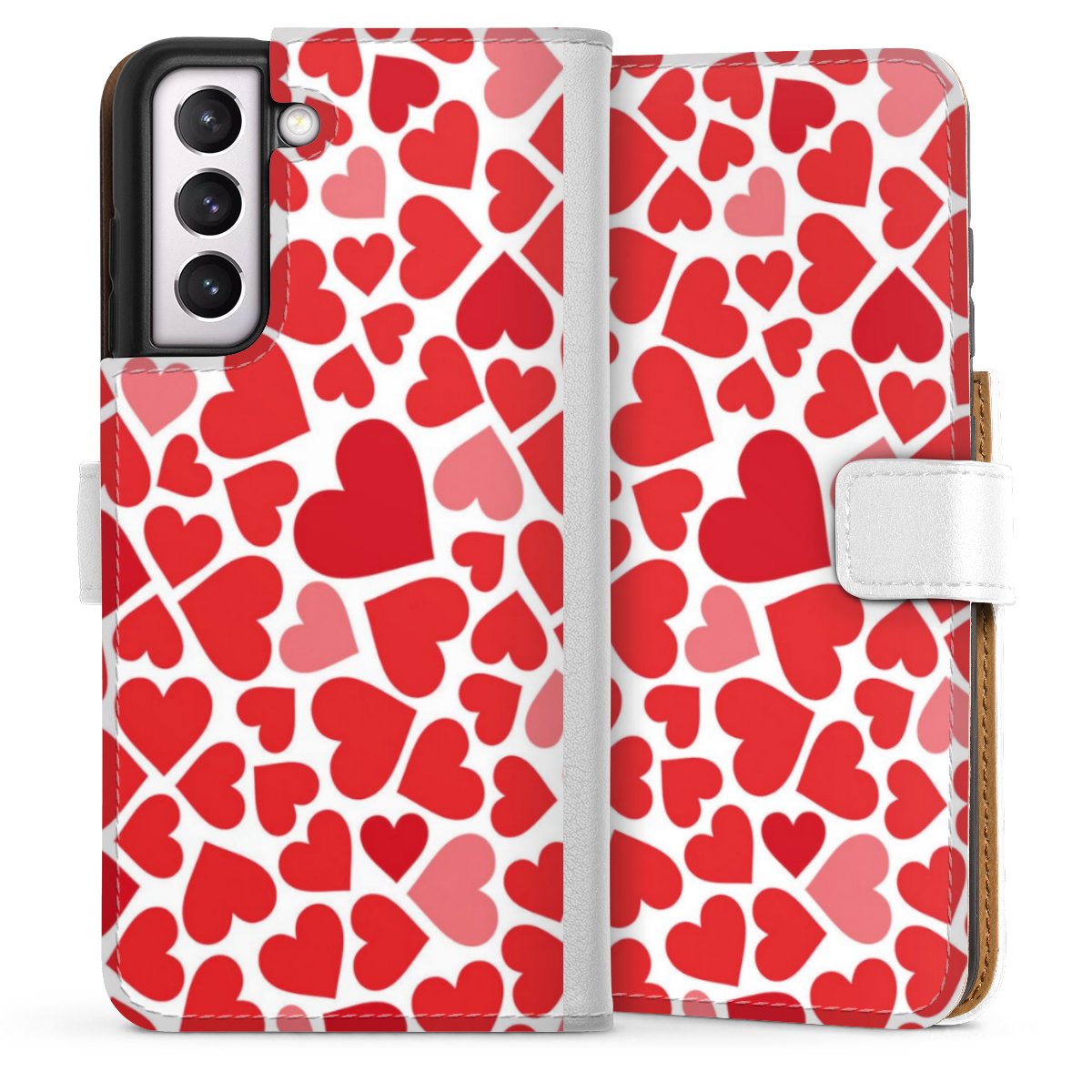 For our Sideflip Case we are using our advanced direct printing technology. The back and frontside are fully printabale, the inside of the phone bag is left unprinted. You can order the phone case without print, printed completely or also with a partial print.