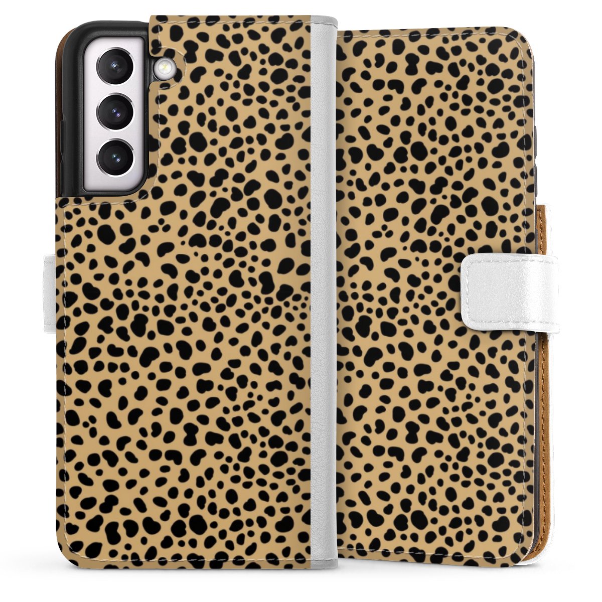 For our Sideflip Case we are using our advanced direct printing technology. The back and frontside are fully printabale, the inside of the phone bag is left unprinted. You can order the phone case without print, printed completely or also with a partial print.