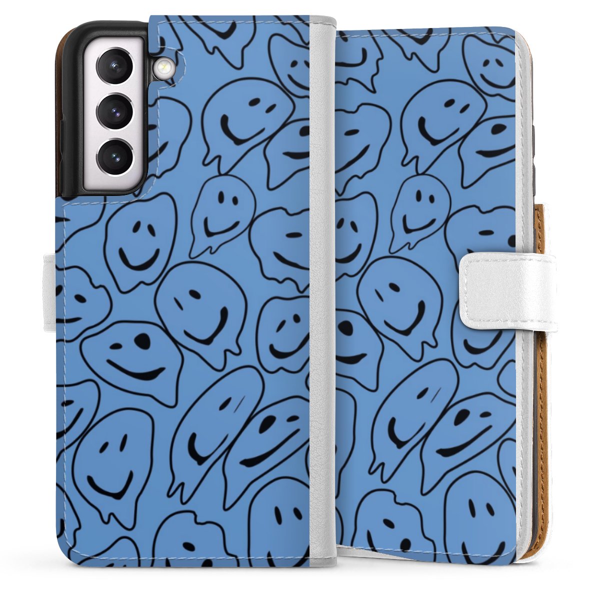 For our Sideflip Case we are using our advanced direct printing technology. The back and frontside are fully printabale, the inside of the phone bag is left unprinted. You can order the phone case without print, printed completely or also with a partial print.