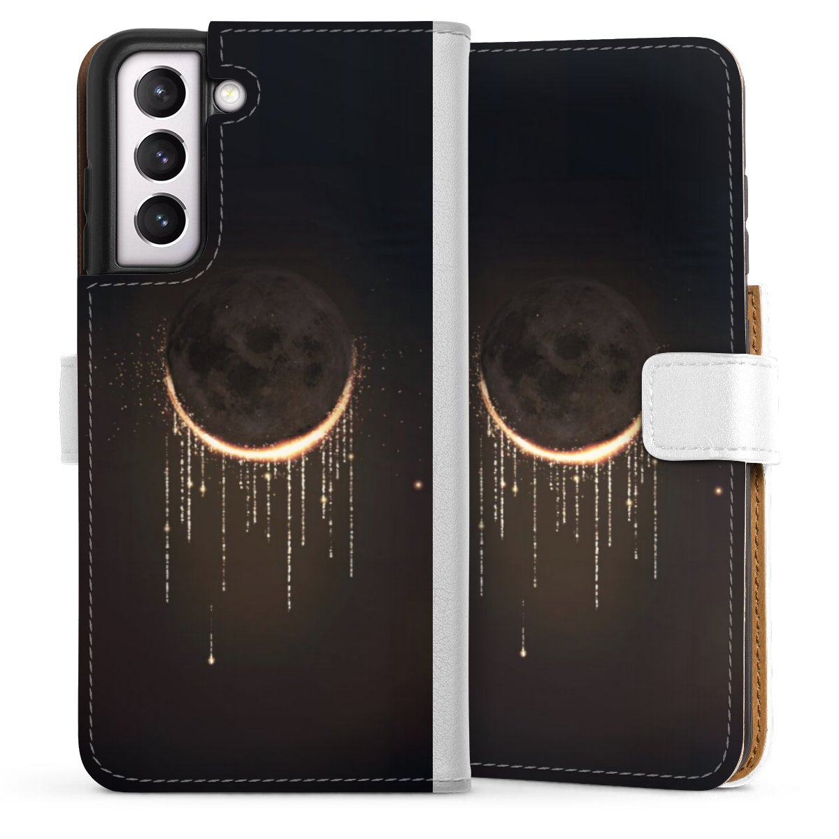 For our Sideflip Case we are using our advanced direct printing technology. The back and frontside are fully printabale, the inside of the phone bag is left unprinted. You can order the phone case without print, printed completely or also with a partial print.
