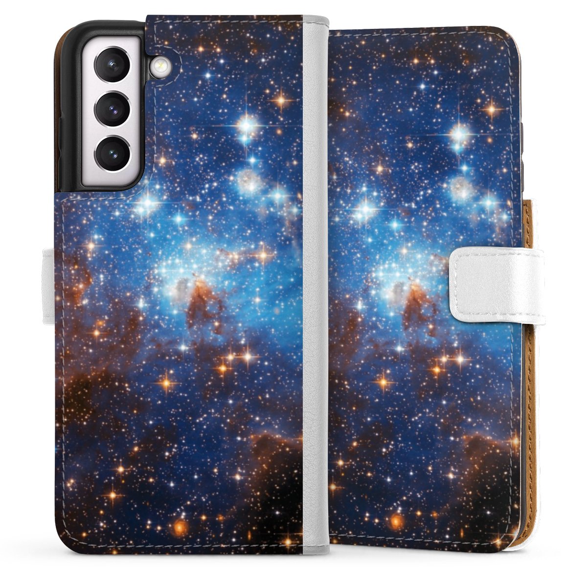 For our Sideflip Case we are using our advanced direct printing technology. The back and frontside are fully printabale, the inside of the phone bag is left unprinted. You can order the phone case without print, printed completely or also with a partial print.