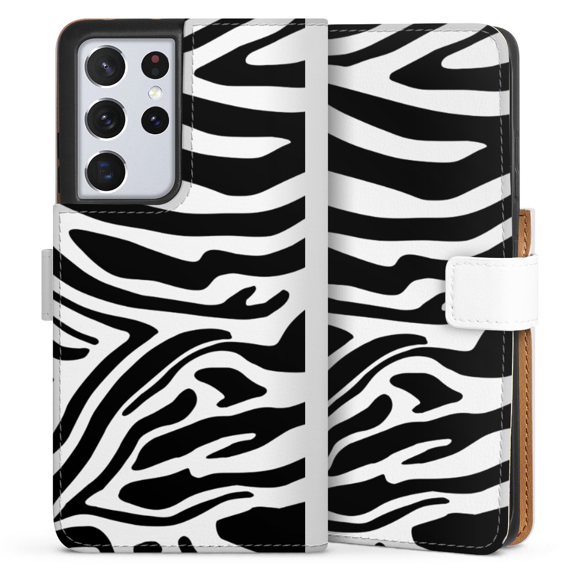 For our Sideflip Case we are using our advanced direct printing technology. The back and frontside are fully printabale, the inside of the phone bag is left unprinted. You can order the phone case without print, printed completely or also with a partial print.