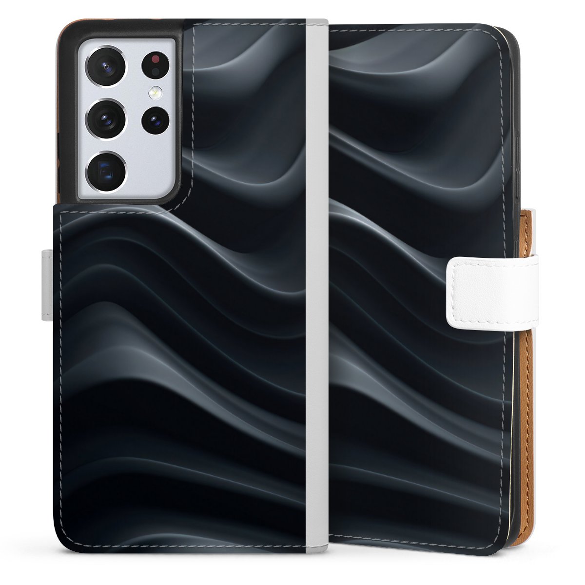 For our Sideflip Case we are using our advanced direct printing technology. The back and frontside are fully printabale, the inside of the phone bag is left unprinted. You can order the phone case without print, printed completely or also with a partial print.