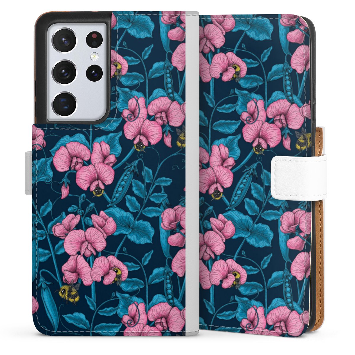 For our Sideflip Case we are using our advanced direct printing technology. The back and frontside are fully printabale, the inside of the phone bag is left unprinted. You can order the phone case without print, printed completely or also with a partial print.