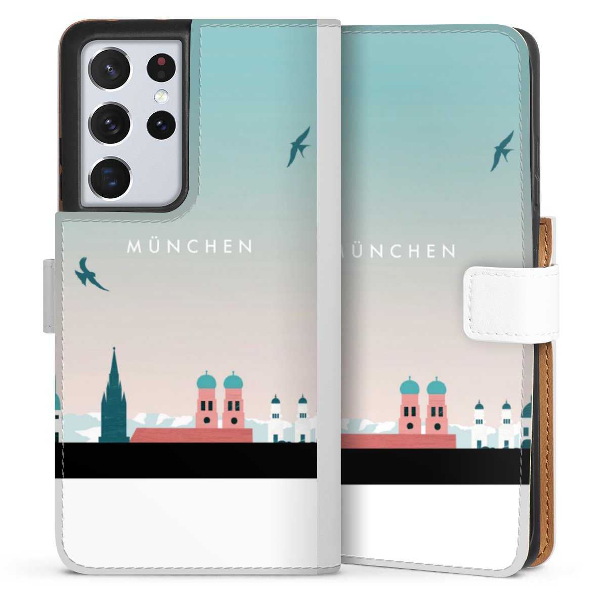 For our Sideflip Case we are using our advanced direct printing technology. The back and frontside are fully printabale, the inside of the phone bag is left unprinted. You can order the phone case without print, printed completely or also with a partial print.