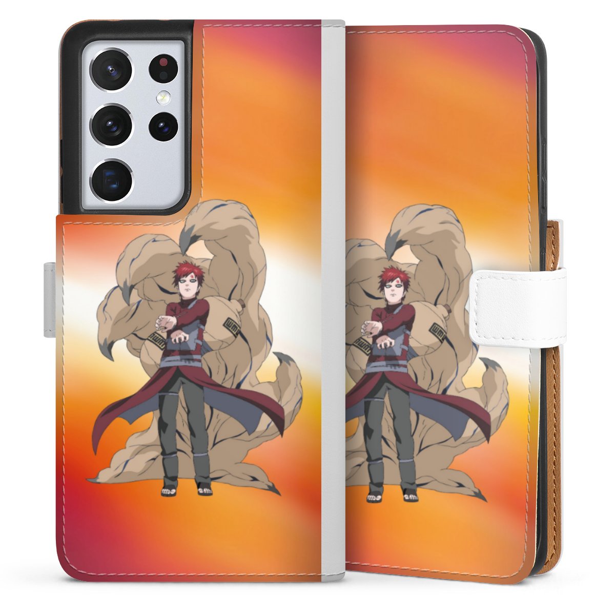 For our Sideflip Case we are using our advanced direct printing technology. The back and frontside are fully printabale, the inside of the phone bag is left unprinted. You can order the phone case without print, printed completely or also with a partial print.