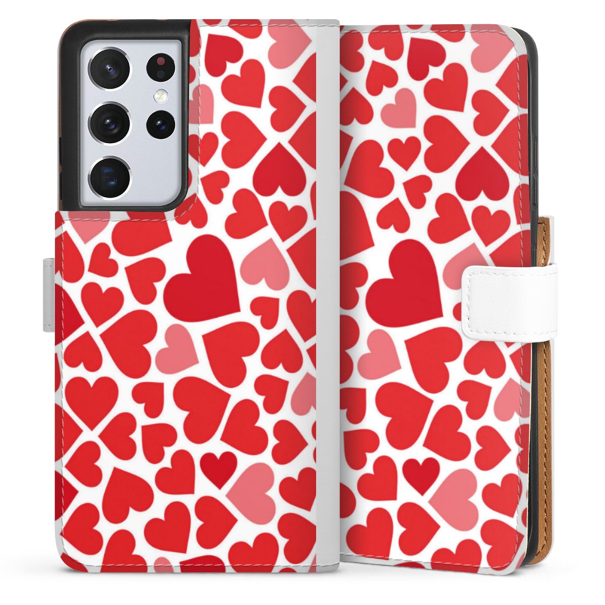 For our Sideflip Case we are using our advanced direct printing technology. The back and frontside are fully printabale, the inside of the phone bag is left unprinted. You can order the phone case without print, printed completely or also with a partial print.