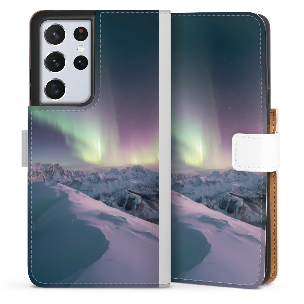 For our Sideflip Case we are using our advanced direct printing technology. The back and frontside are fully printabale, the inside of the phone bag is left unprinted. You can order the phone case without print, printed completely or also with a partial print.