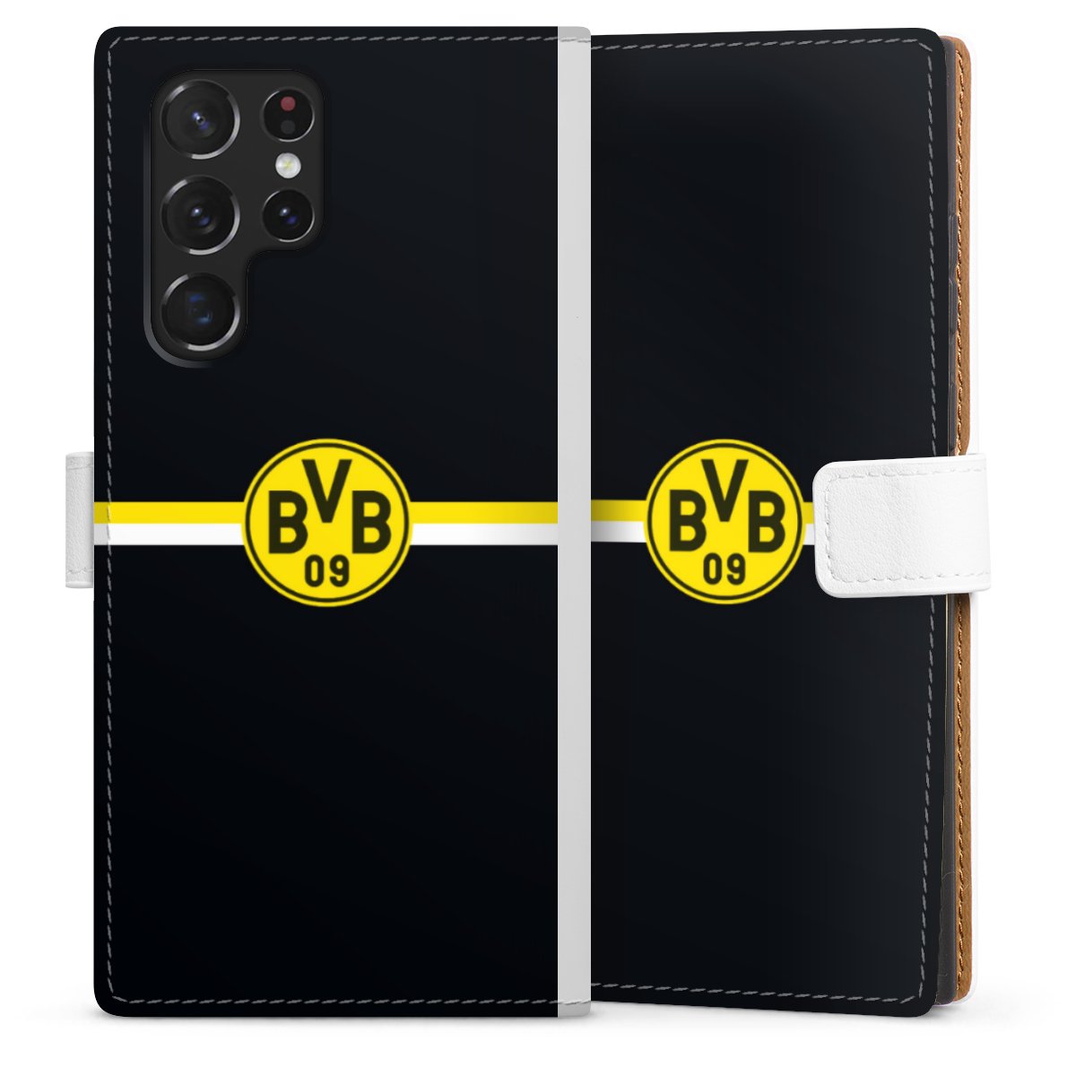 For our Sideflip Case we are using our advanced direct printing technology. The back and frontside are fully printabale, the inside of the phone bag is left unprinted. You can order the phone case without print, printed completely or also with a partial print.