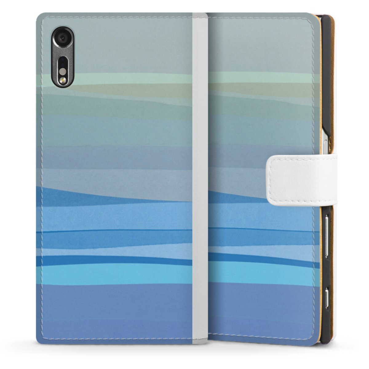 For our Sideflip Case we are using our advanced direct printing technology. The back and frontside are fully printabale, the inside of the phone bag is left unprinted. You can order the phone case without print, printed completely or also with a partial print.
