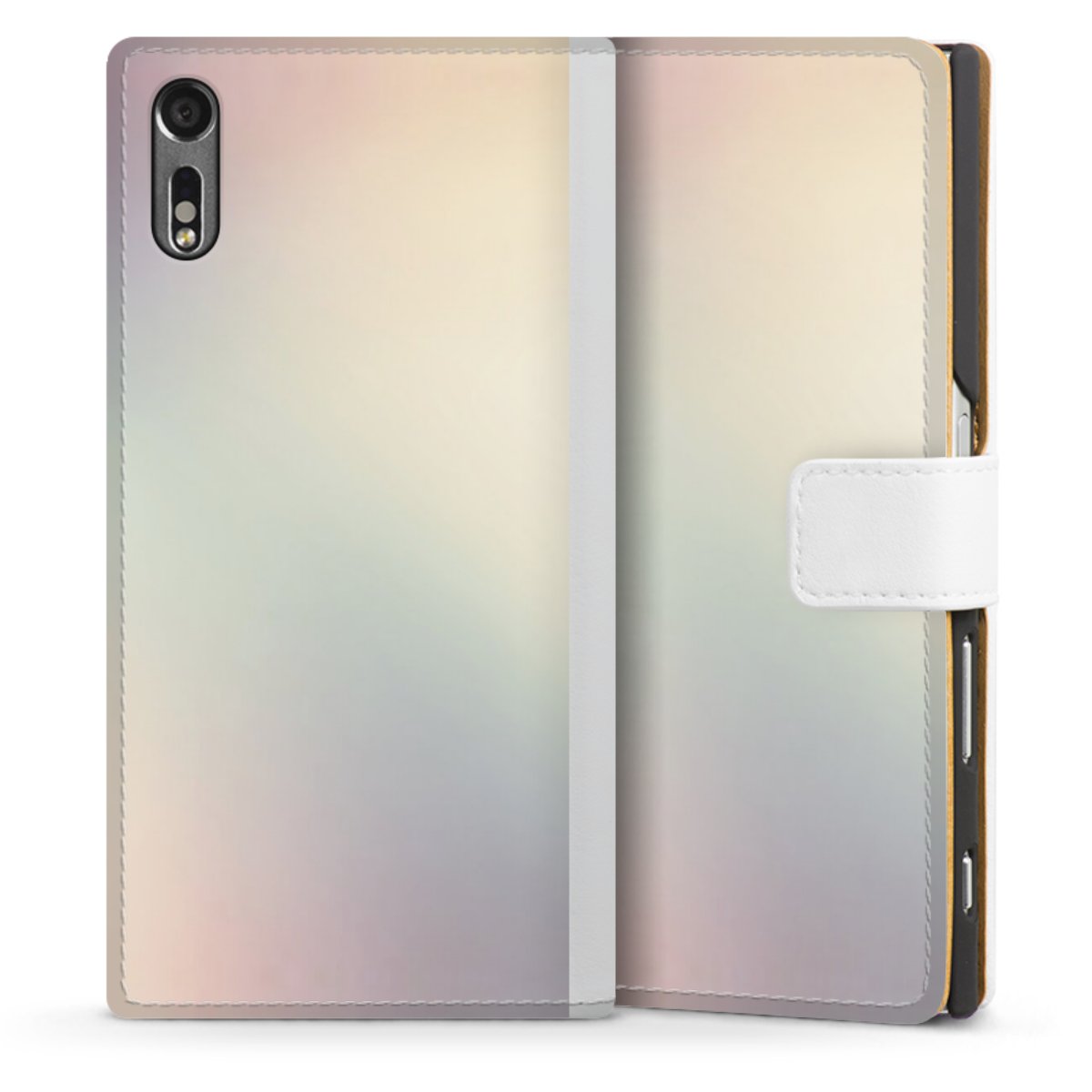 For our Sideflip Case we are using our advanced direct printing technology. The back and frontside are fully printabale, the inside of the phone bag is left unprinted. You can order the phone case without print, printed completely or also with a partial print.