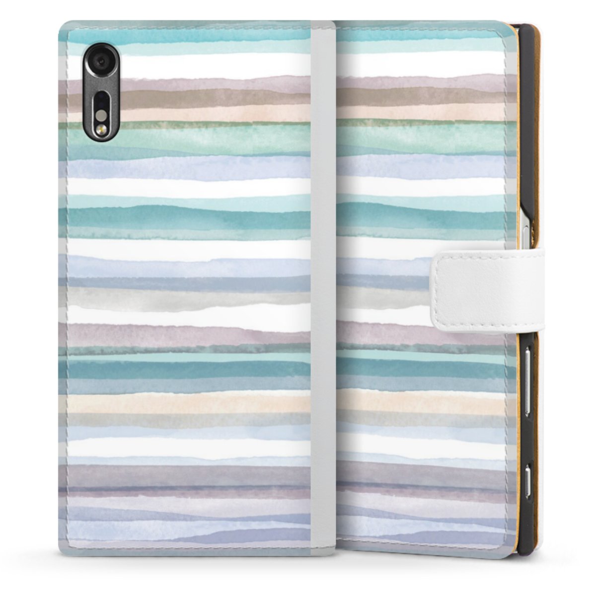 For our Sideflip Case we are using our advanced direct printing technology. The back and frontside are fully printabale, the inside of the phone bag is left unprinted. You can order the phone case without print, printed completely or also with a partial print.