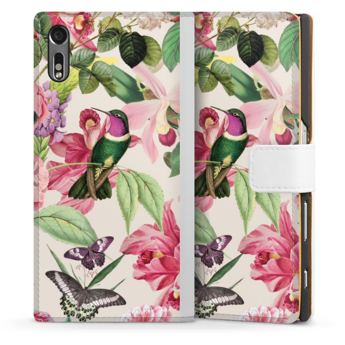 For our Sideflip Case we are using our advanced direct printing technology. The back and frontside are fully printabale, the inside of the phone bag is left unprinted. You can order the phone case without print, printed completely or also with a partial print.