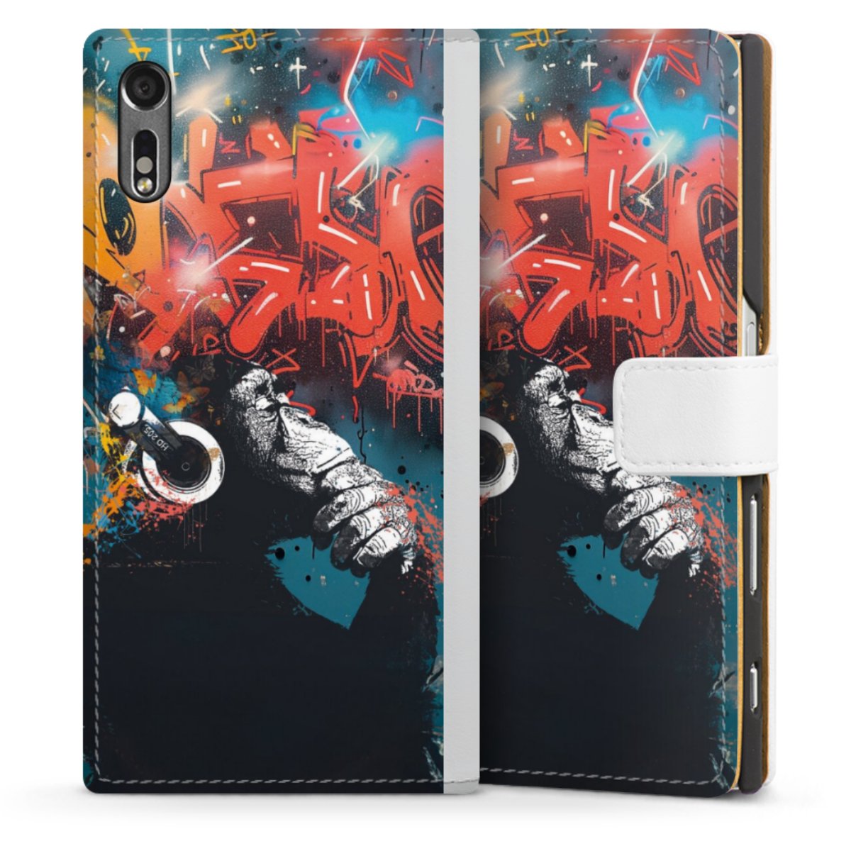 For our Sideflip Case we are using our advanced direct printing technology. The back and frontside are fully printabale, the inside of the phone bag is left unprinted. You can order the phone case without print, printed completely or also with a partial print.