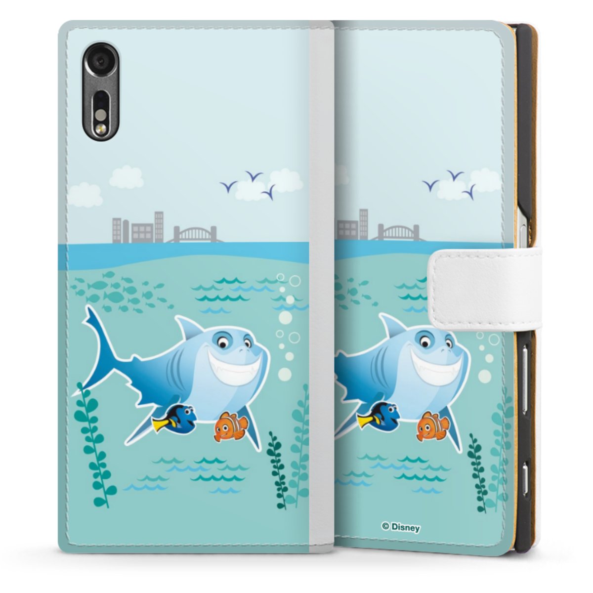 For our Sideflip Case we are using our advanced direct printing technology. The back and frontside are fully printabale, the inside of the phone bag is left unprinted. You can order the phone case without print, printed completely or also with a partial print.