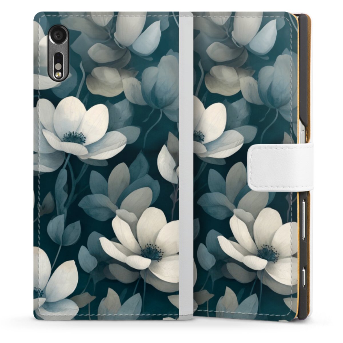 For our Sideflip Case we are using our advanced direct printing technology. The back and frontside are fully printabale, the inside of the phone bag is left unprinted. You can order the phone case without print, printed completely or also with a partial print.