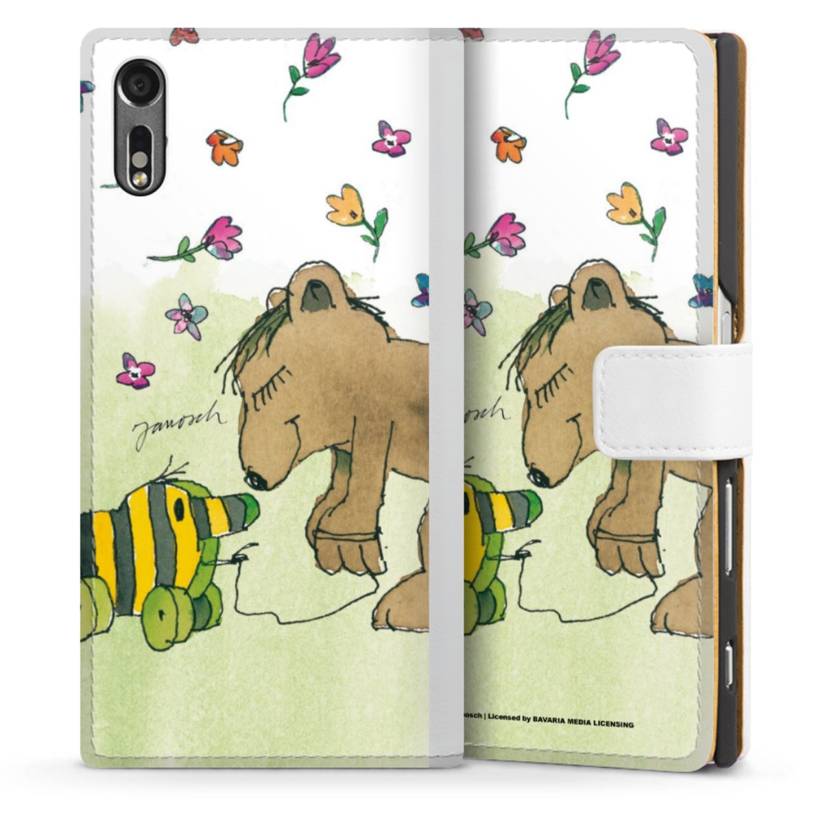 For our Sideflip Case we are using our advanced direct printing technology. The back and frontside are fully printabale, the inside of the phone bag is left unprinted. You can order the phone case without print, printed completely or also with a partial print.