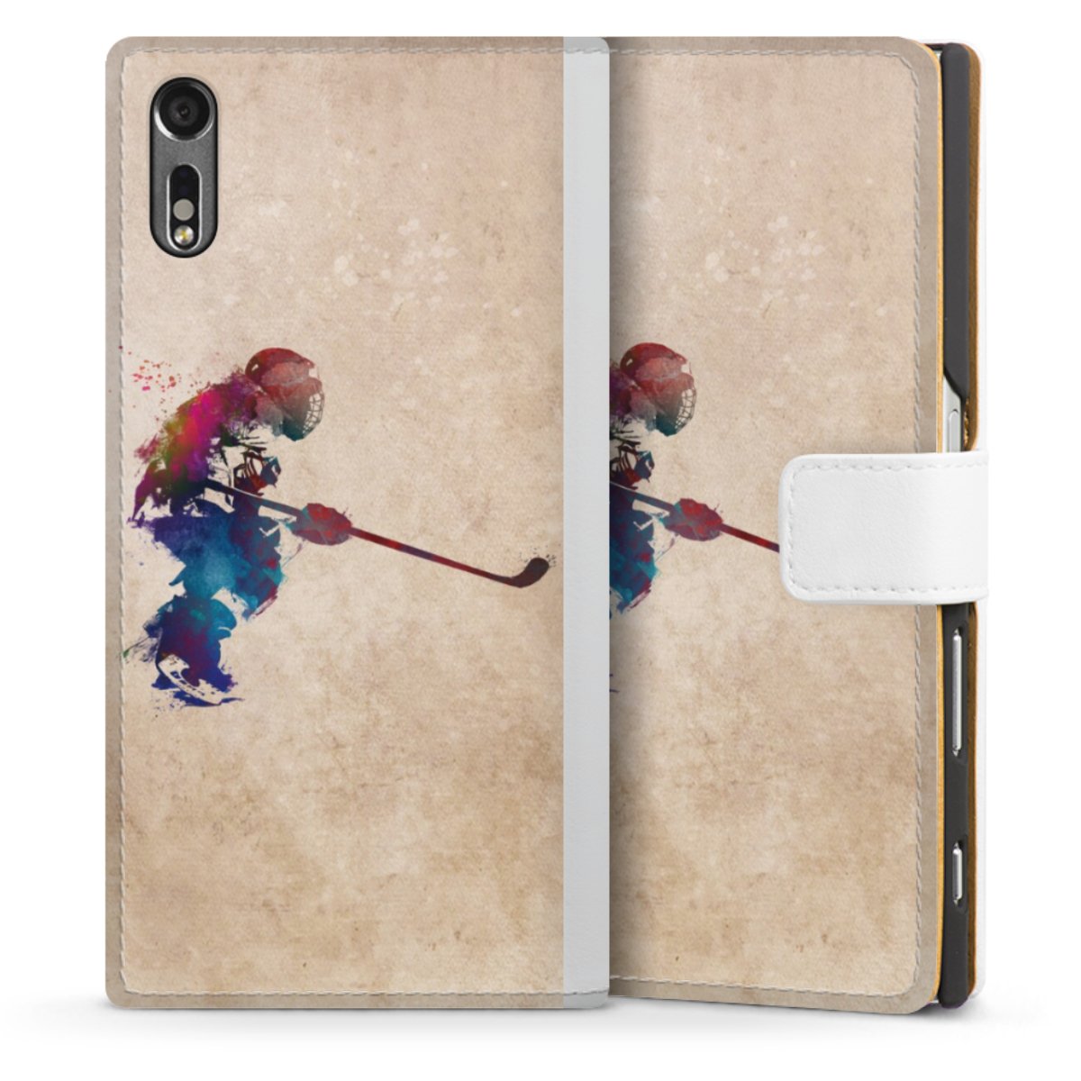 For our Sideflip Case we are using our advanced direct printing technology. The back and frontside are fully printabale, the inside of the phone bag is left unprinted. You can order the phone case without print, printed completely or also with a partial print.