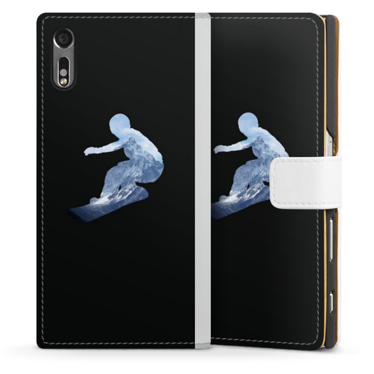 For our Sideflip Case we are using our advanced direct printing technology. The back and frontside are fully printabale, the inside of the phone bag is left unprinted. You can order the phone case without print, printed completely or also with a partial print.