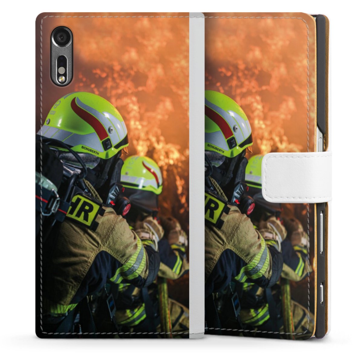 For our Sideflip Case we are using our advanced direct printing technology. The back and frontside are fully printabale, the inside of the phone bag is left unprinted. You can order the phone case without print, printed completely or also with a partial print.