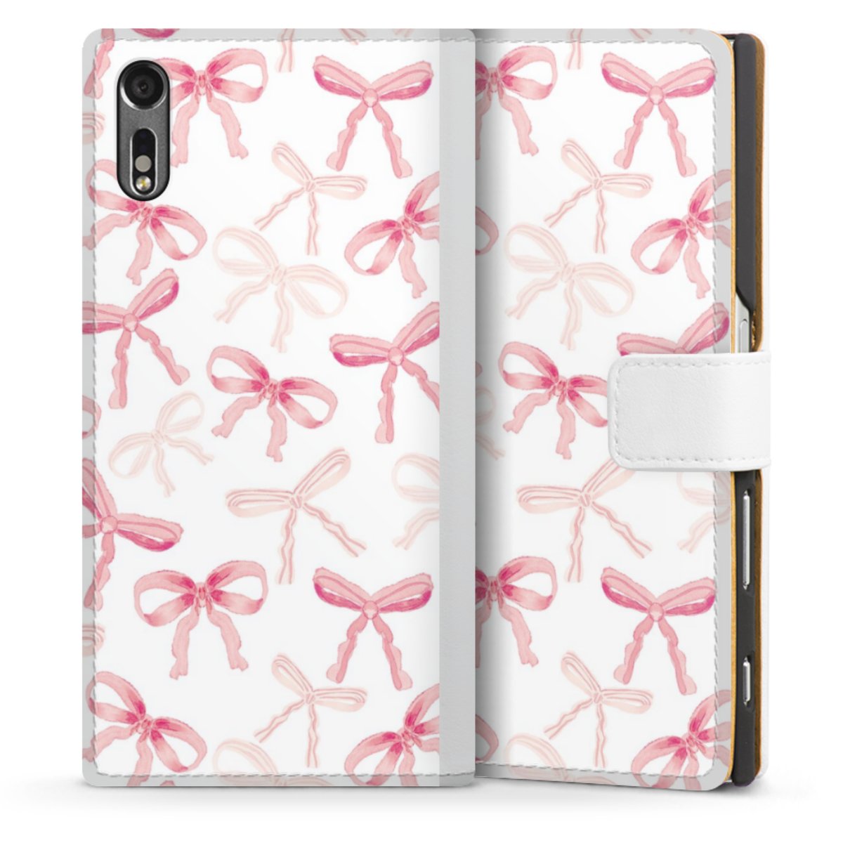 For our Sideflip Case we are using our advanced direct printing technology. The back and frontside are fully printabale, the inside of the phone bag is left unprinted. You can order the phone case without print, printed completely or also with a partial print.