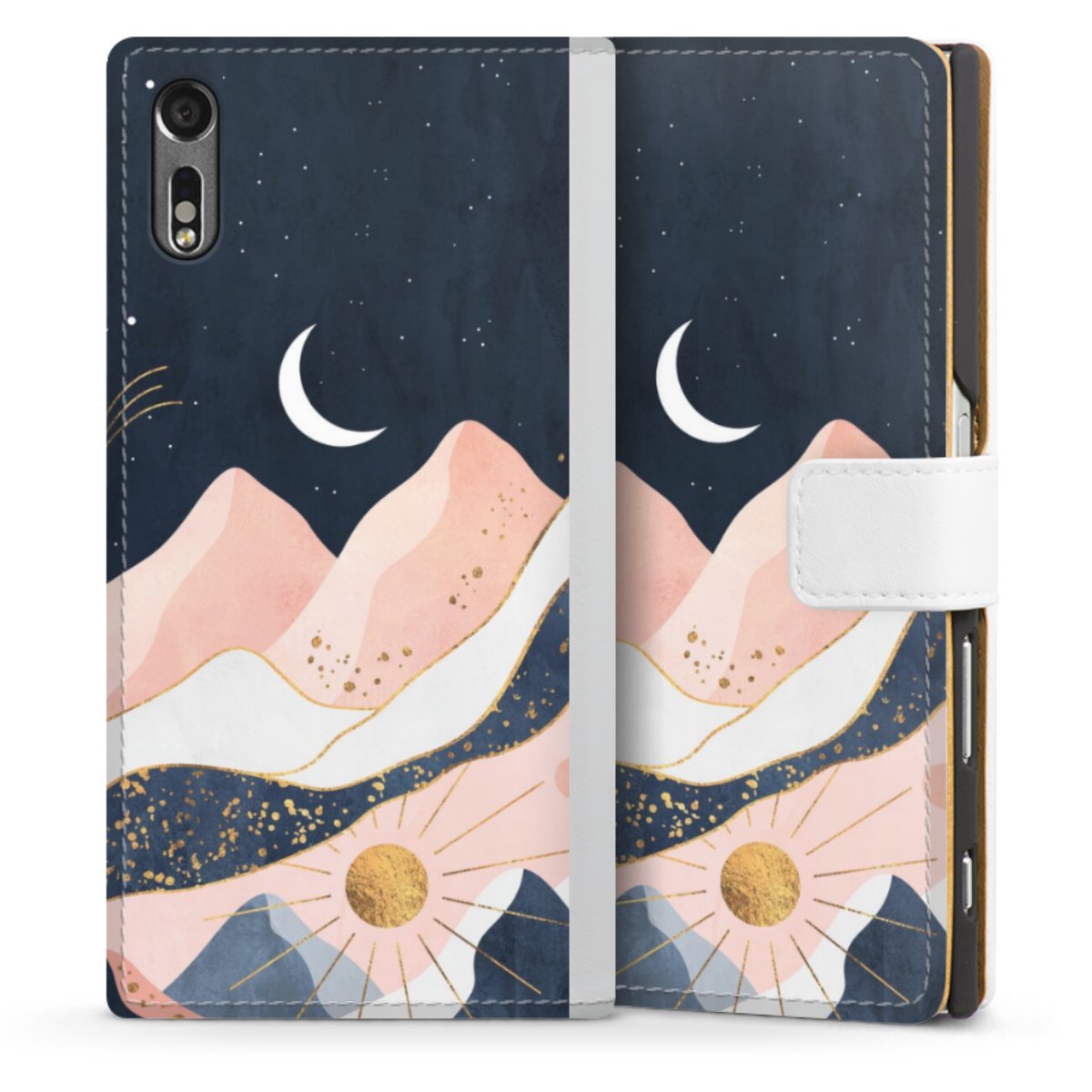 For our Sideflip Case we are using our advanced direct printing technology. The back and frontside are fully printabale, the inside of the phone bag is left unprinted. You can order the phone case without print, printed completely or also with a partial print.
