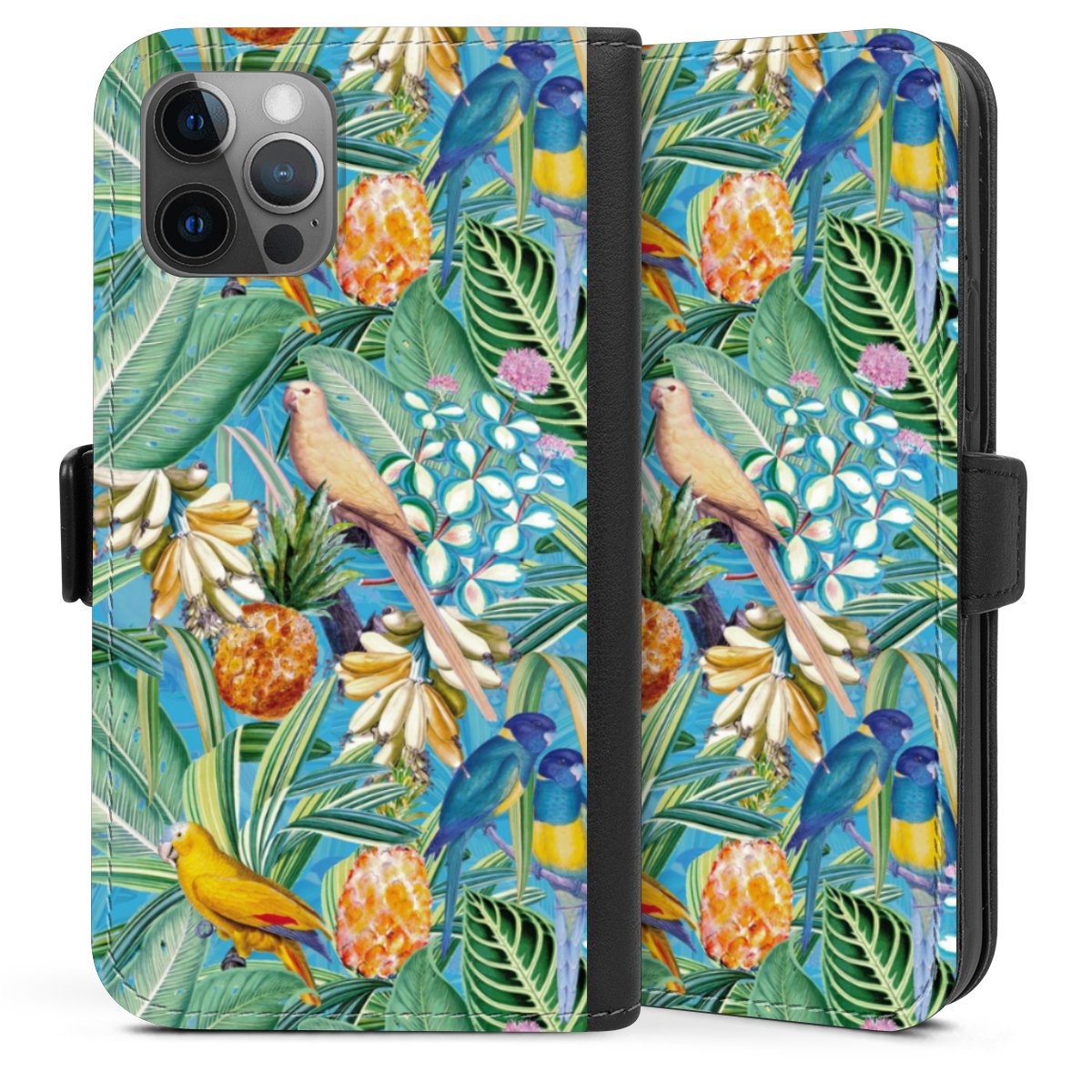 Tropical Parrots on Blue Wallpaper