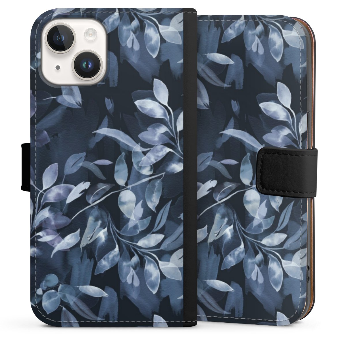 Watercolor Mystic Leaves Navy