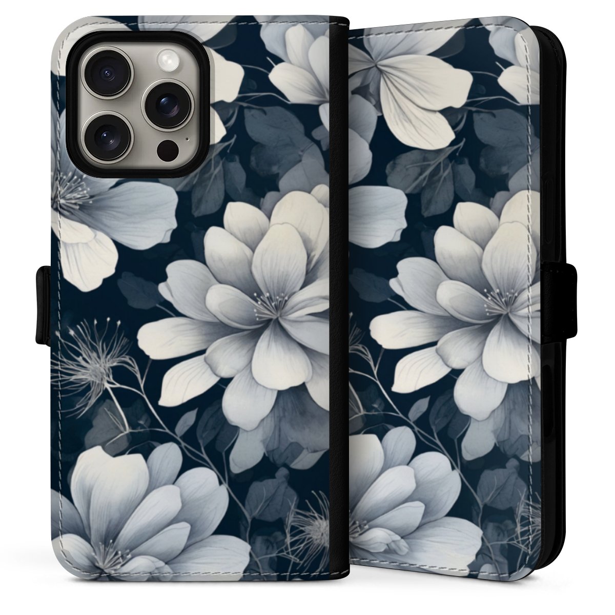 Negative Flower Blue White with AI