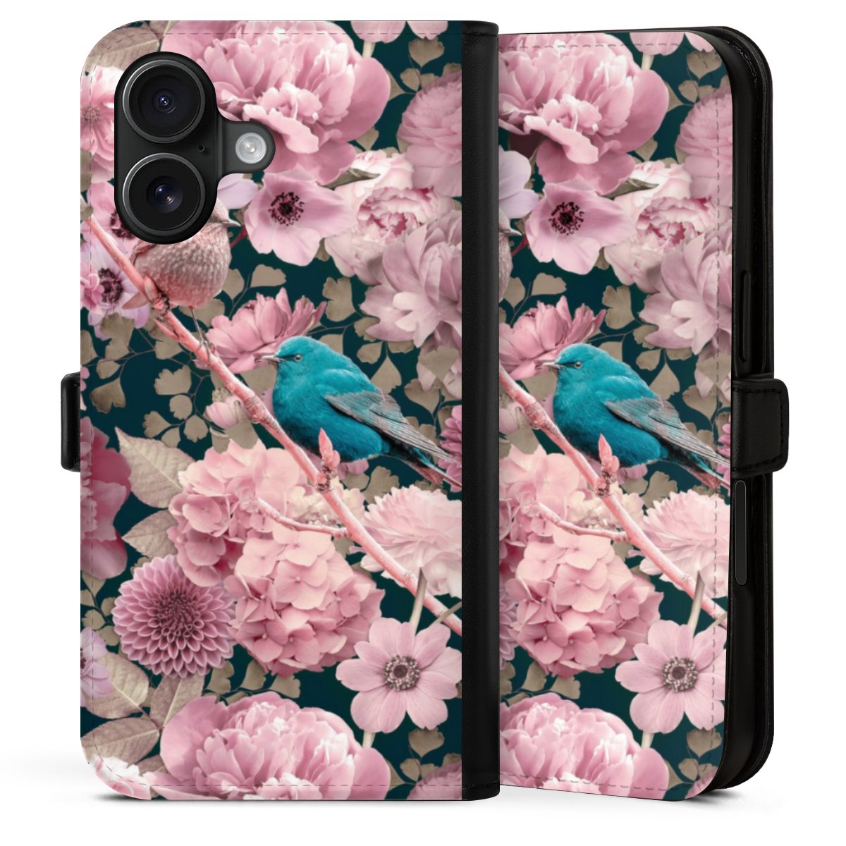 Sparrows in Pink Flower Pattern