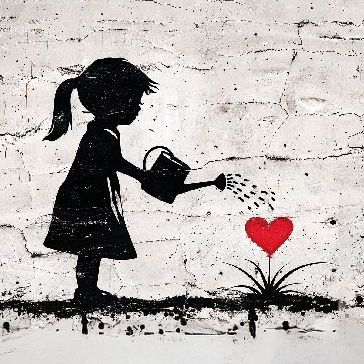 Girl Watering Bunch of Flowers
