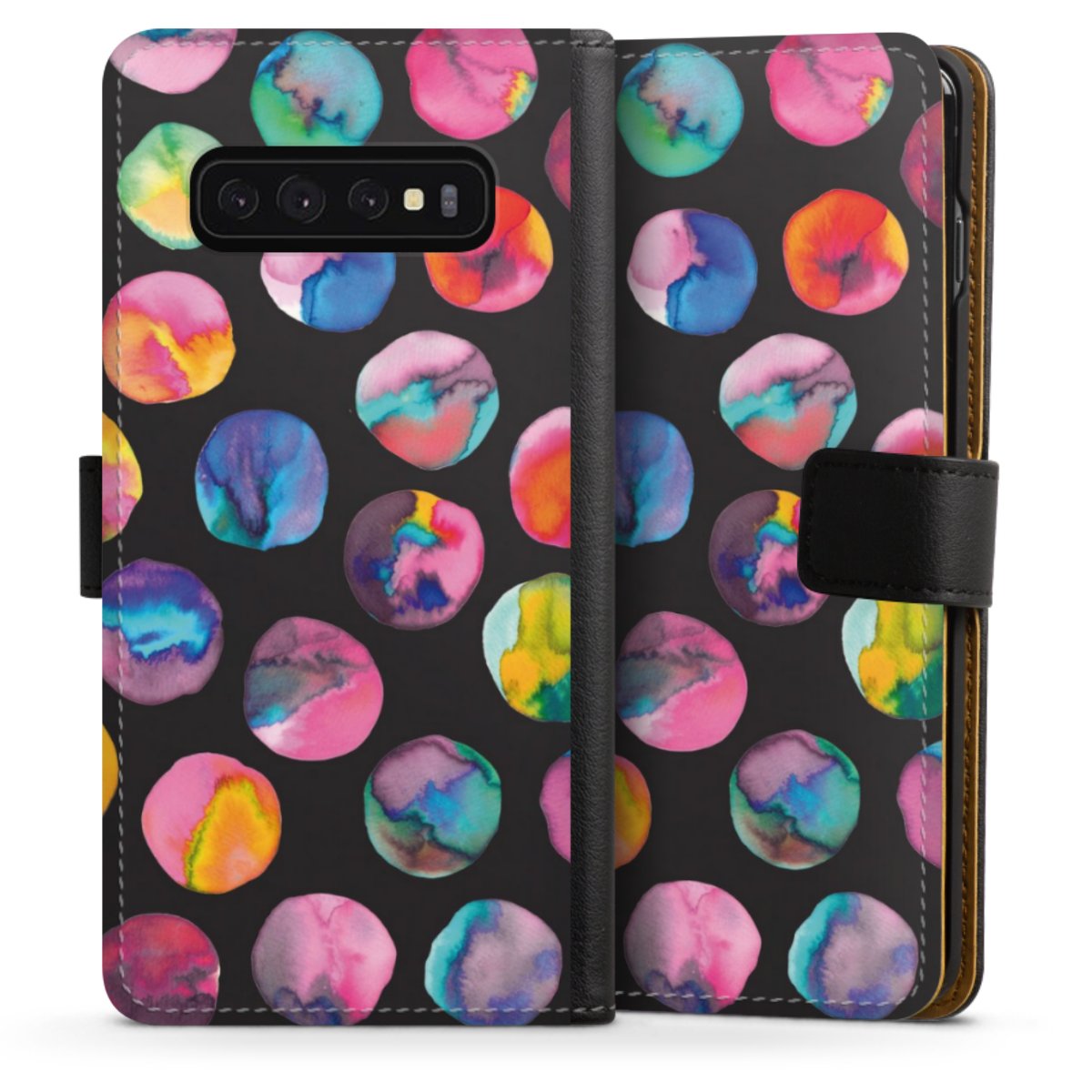 Colorful Ink Marbles Dots Black