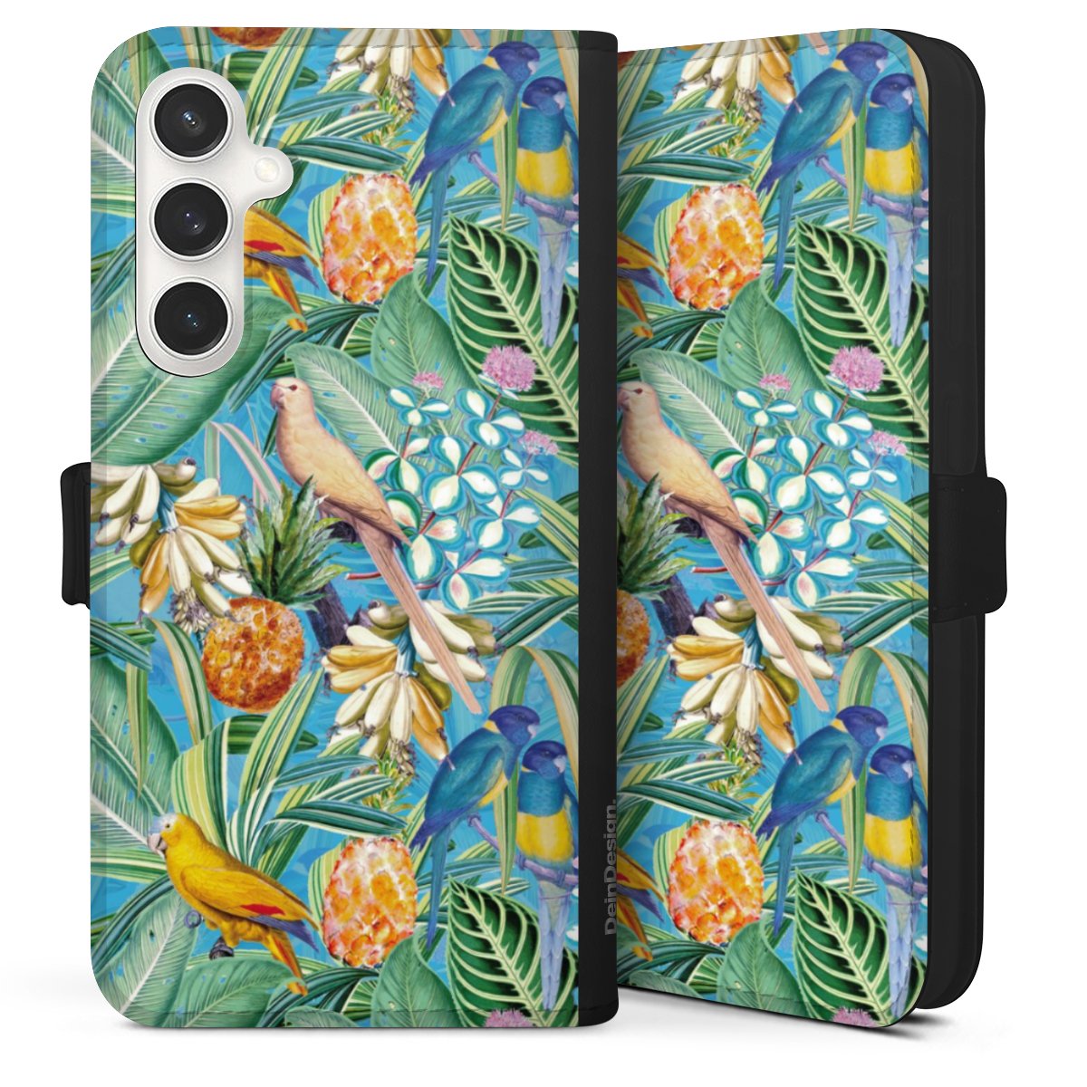 Tropical Parrots on Blue Wallpaper