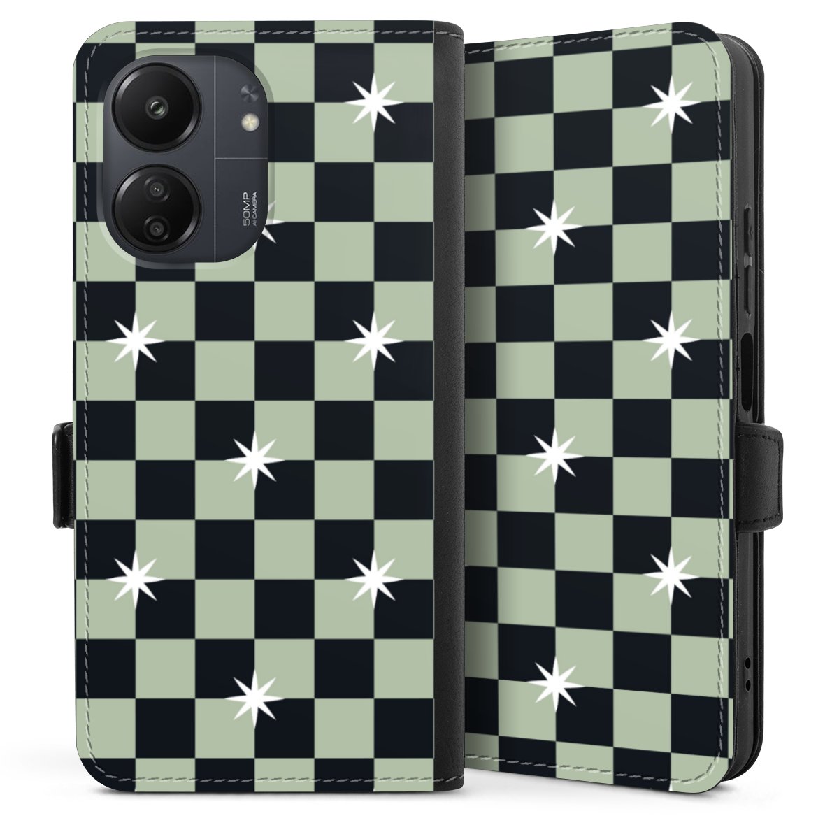 Checked Pattern Black Grey Stars