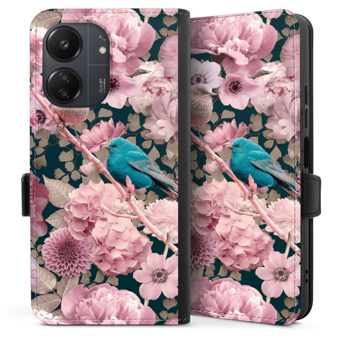 Sparrows in Pink Flower Pattern
