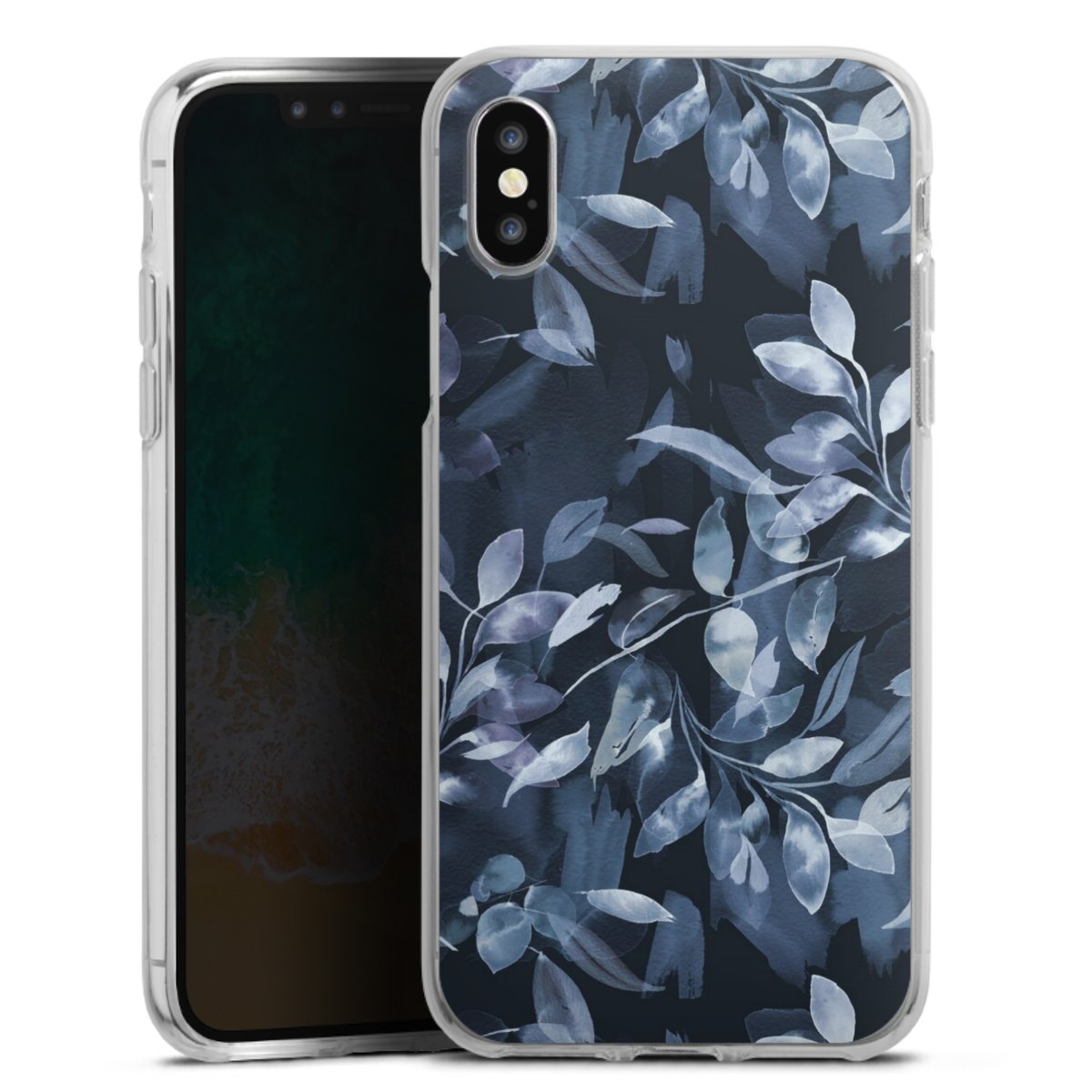 Watercolor Mystic Leaves Navy