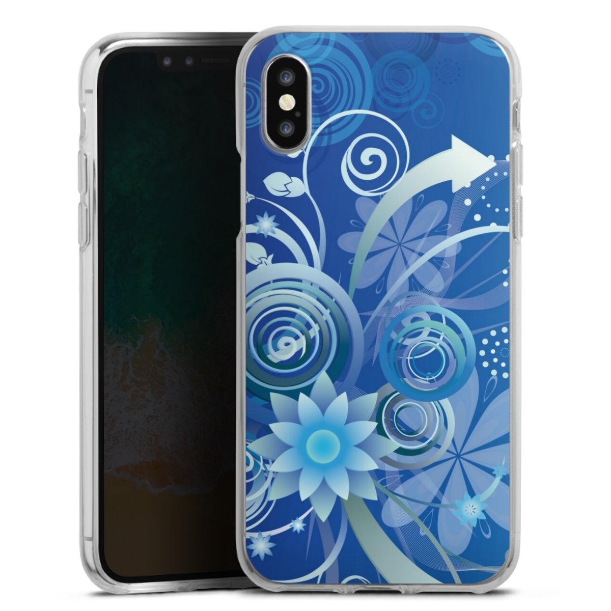 Flowers and Swirls Blue