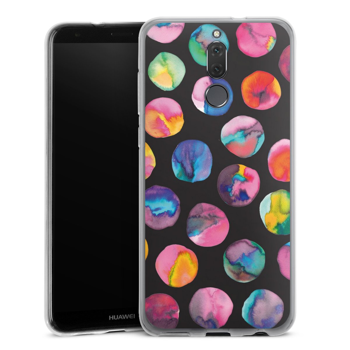Colorful Ink Marbles Dots Black