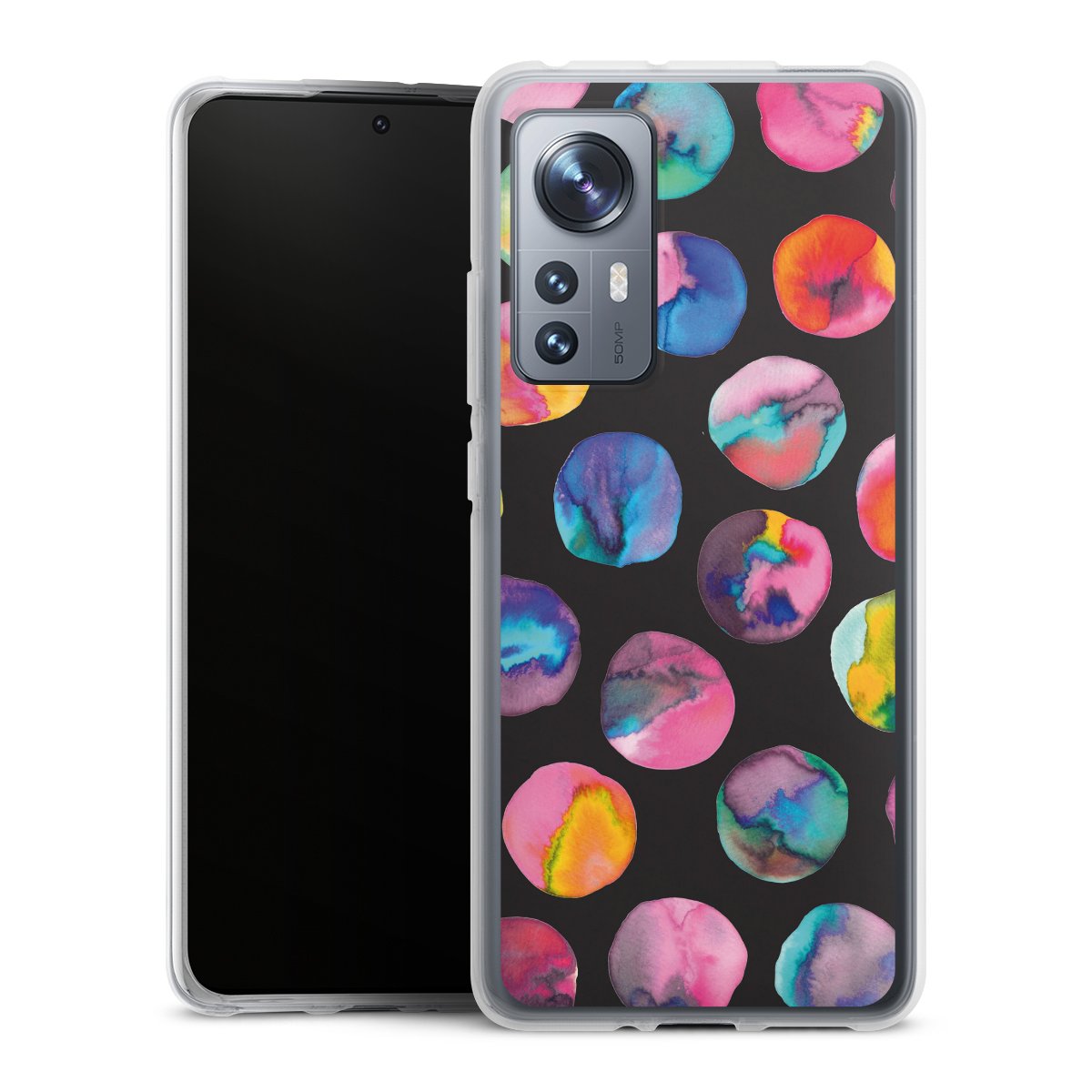 Colorful Ink Marbles Dots Black