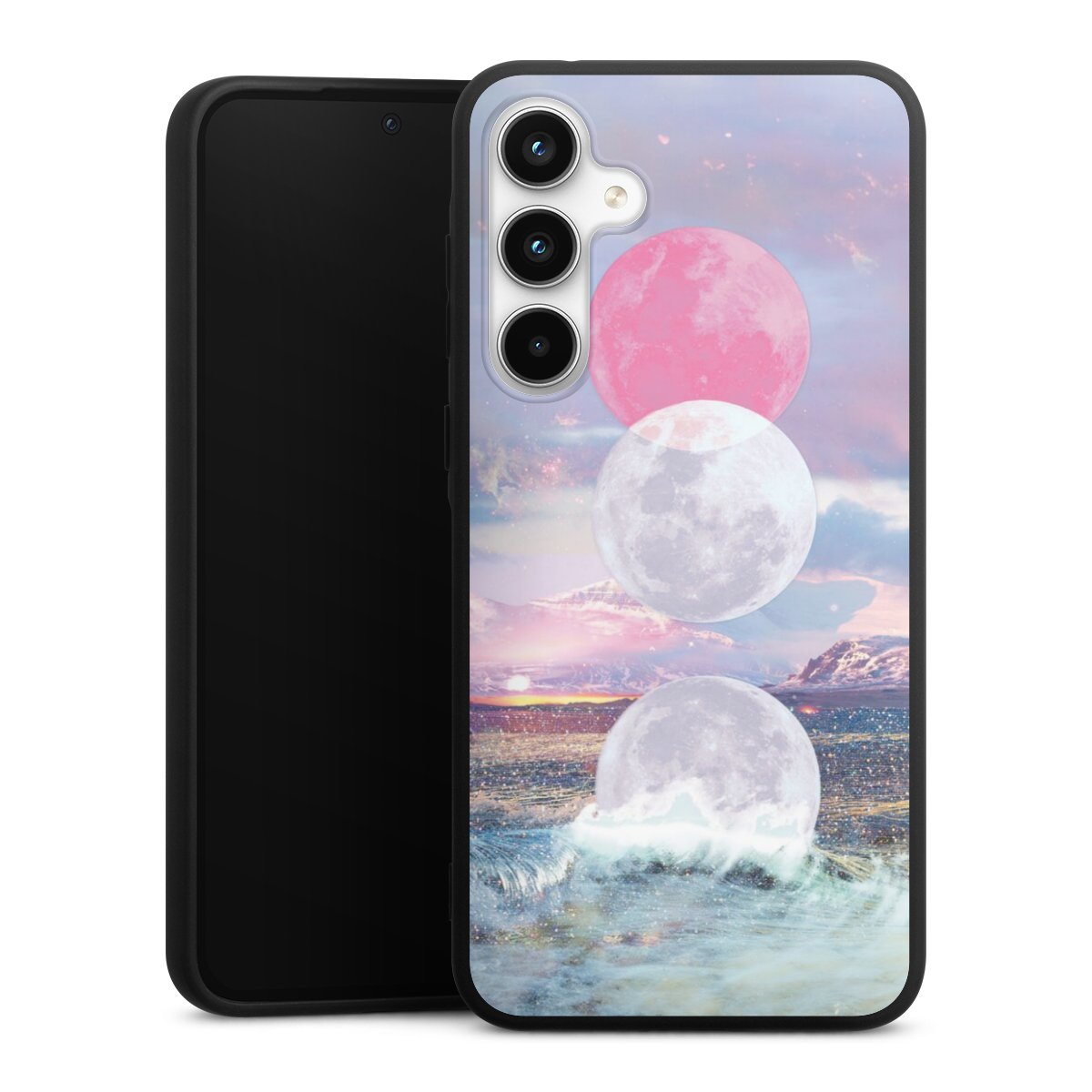 For the Silicone Premium Case Line we use the solid direct printing process. The print area covers the back, the edge remains unprinted. The mobile phone case can be ordered unprinted, fully printed, or partially printed. For your design, either choose one of our exclusive shop motifs or get creative and create your own design, for example with photos and overlays.
